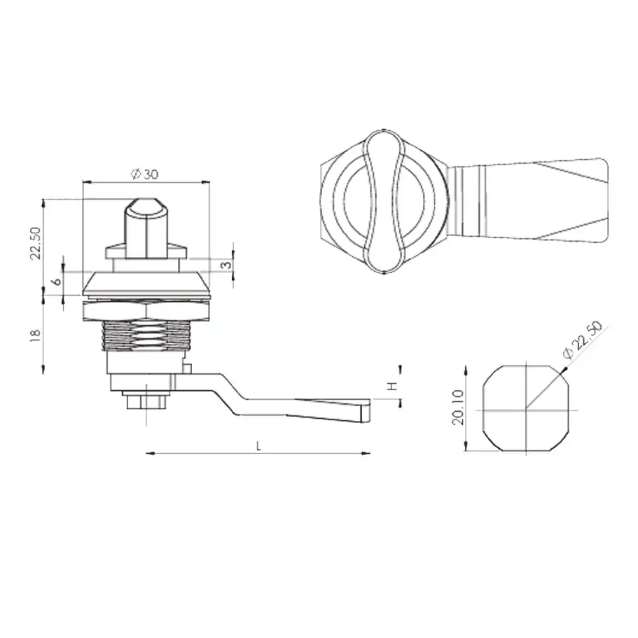 قفل پروانه ای پلاستیک کامل دستگیره کروم مهره زاماک کد 232-362